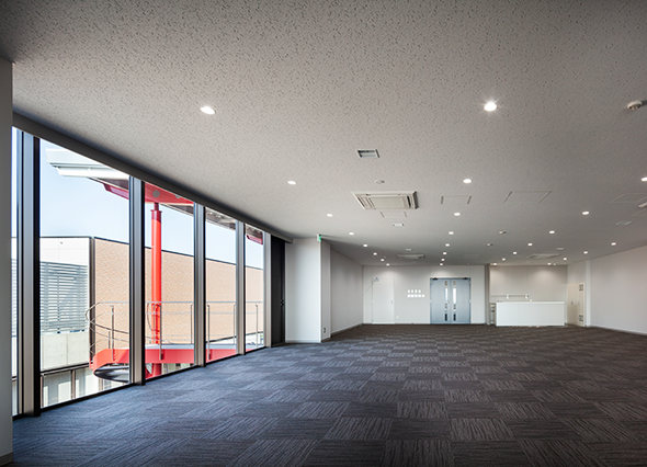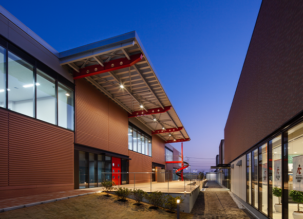 約3,200㎡の研究開発棟は、「運ぶ・動かす」ためのアイデアとイマジネーションを形にするカツヤマキカイの実験工房です。