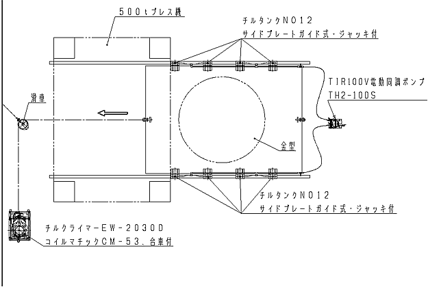 500tプレス機に使用する金型をセットするための台車の移動にチルタンクが活躍しています。