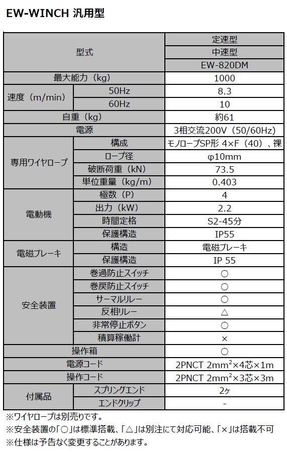1tonタイプのゴンドラ型電動エンドレスウインチ。(50Hz : 8.4 m/min 60Hz : 10.1 m/min)