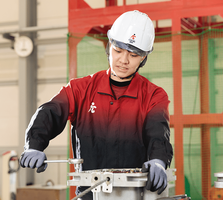 これまでで最も印象に残っている仕事は、デッキ型ゴンドラ10台を一人で組み立てたことです。部品の寸法検査、社内検査、組み立て、タッチアップ(塗装)、梱包など一連の流れを全て経験することができました。そして設計段階から気をつけなければいけないのはどういう点なのか、そして、自分が設計した製品が次工程以降でどうやって形になっていくかを学ぶことができました。