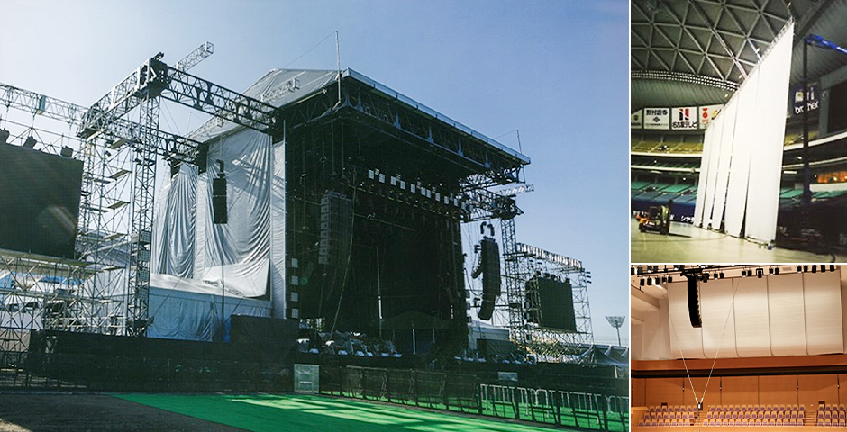 カツヤマキカイの製品と技術は、イベント会場での舞台照明装置やネットの昇降、巨大映像設備の吊り上げ等で活躍しています。