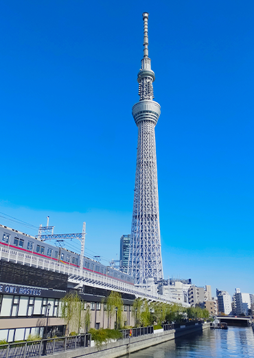 東京スカイツリーでのエレベータ据付工事では、ビルと違って途中階がなく、エレベーター取付工事用ゴンドラを最上部から吊上げることになり、エレベーター自体の昇降行程(464m)をも上回る500mの揚程に対応してきました。